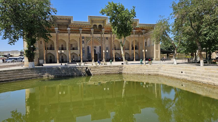 Экскурсия по Бухаре: ансамбль Ляби-Хауз – самая известная площадь Бухары с искусственным прудом, вокруг которого расположены медресе Кукельдаш, медресе Надира Диванбеги, ханака, знаменитый памятник Ходже Насреддину и множество уютных кафе.