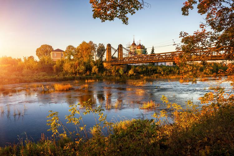 Неподалеку от Пскова мы переместимся во времени, в эпоху Ледового побоища и Невской битвы. Наш путь лежит на берега живописной реки с символичным названием Великая. Река, и правда, весьма необычная - у нее настолько мощное и быстрое течение, что в этом месте она не замерзает даже в тридцатиградусные морозы. Разветвляясь на две быстрые протоки, Великая река через несколько сотен метров соединяется вновь, образуя живописный остров посреди своего течения. Именно здесь, в начале XIII века был возведен неприступный "южный щит" Пскова, крупнейшее оборонительное сооружение Древней Руси и единственная крепость на изолированном острове - город-цитадель Остров. К острову проложены два изумительной красоты цепных моста, построенные в середине XIX века, и это единственные в России действующие транспортные цепные мосты. Вы увидите сохранившиеся фрагменты крепости и крепостные валы, по которым можно представить мощь и масштабы островной цитадели. Вместе с ансамблем изящных мостов и белоснежным древним храмом Николая Чудотворца, этот исторический островной оазис создает волшебные, изумительные панорамы.